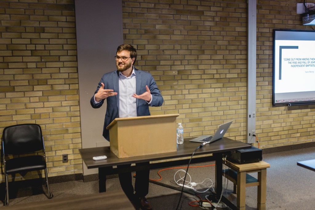 Taylor Murray presented his paper, “‘Come out from among them and be separate’: The Rise and Fall of John James Sidey’s Independent Baptists, 1934-1939.”