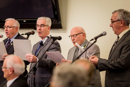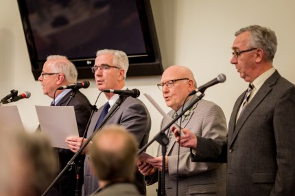 Throughout the evening we were treated to a selection of musical numbers, including several from Dr. Bob’s own quartet (pictured below). Also, worth noting, three members of the Acadia community paid tribute to Dr. Bob in an excellent re-written version of Simon and Garfunkel’s Sound of Silence.