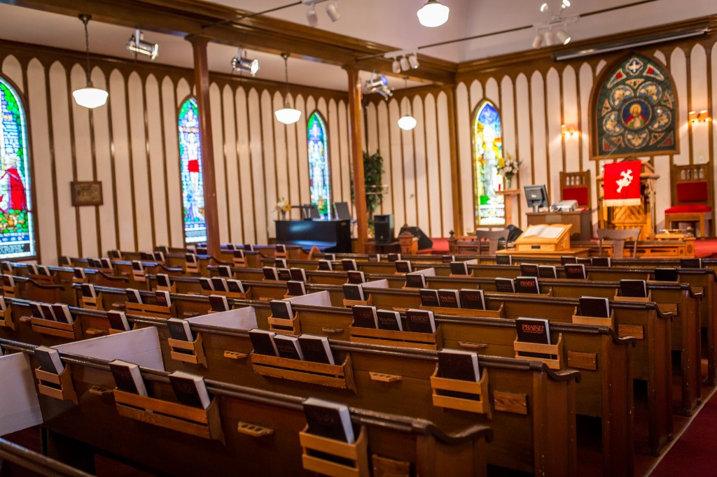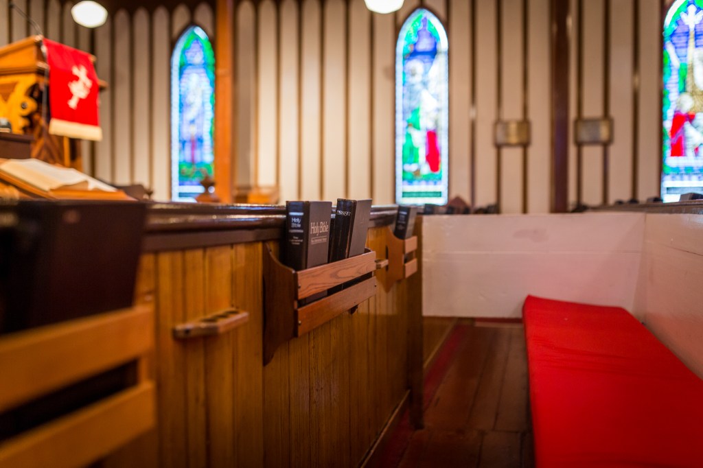 Interestingly, despite the church’s nineteenth century birth, the stained-glass windows that adorn the sides of the sanctuary are a relatively recent addition. Each was added in the late-twentieth century. Many have an inscription (as pictured below) that give a sense of their period of installation. Prior to the installation of these decorative windows, the church simply had regular windows, which would have given the sanctuary a very different appearance.1