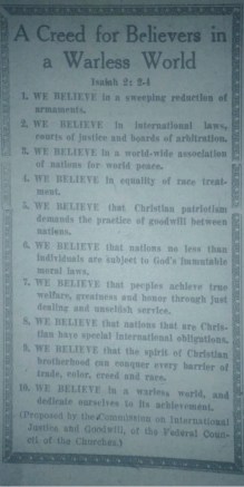 - “A Creed for Believers in a Warless World,” Maritime Baptist, 2 November 1921.