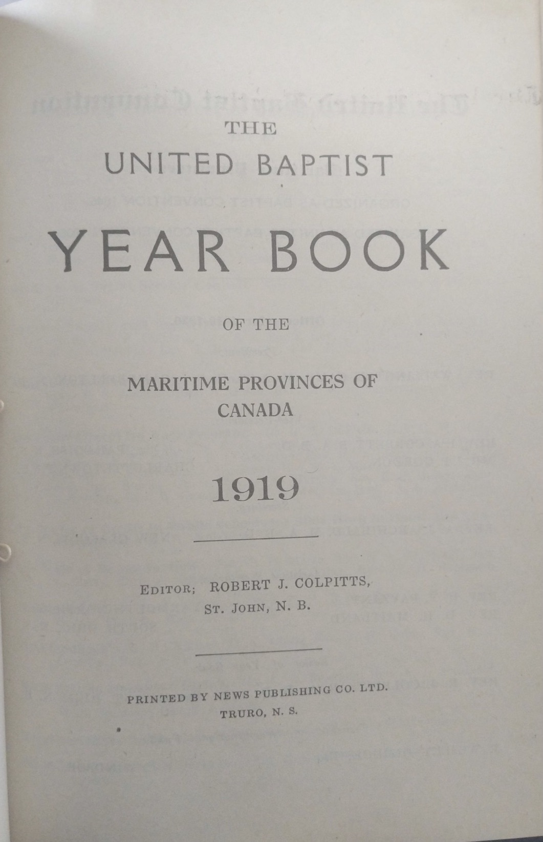 - Robert J. Colpitts, ed. The United Baptist Year Book of the Maritime Provinces of Canada, 1918 (Truro, NS: News Publishing, 1918), 6.
