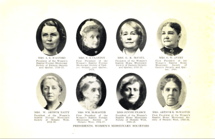- Sharon Bowler, ed., Canadian Baptist Women(Eugene: Pickwick, 2016); Esther Barnes, Our Heritage Becomes Our Challenge – A Scrapbook History of the Baptist Women’s Movement in Ontario and Quebec (Etobicoke, ON: Canadian Baptist Women of Ontario and Quebec, 2013).