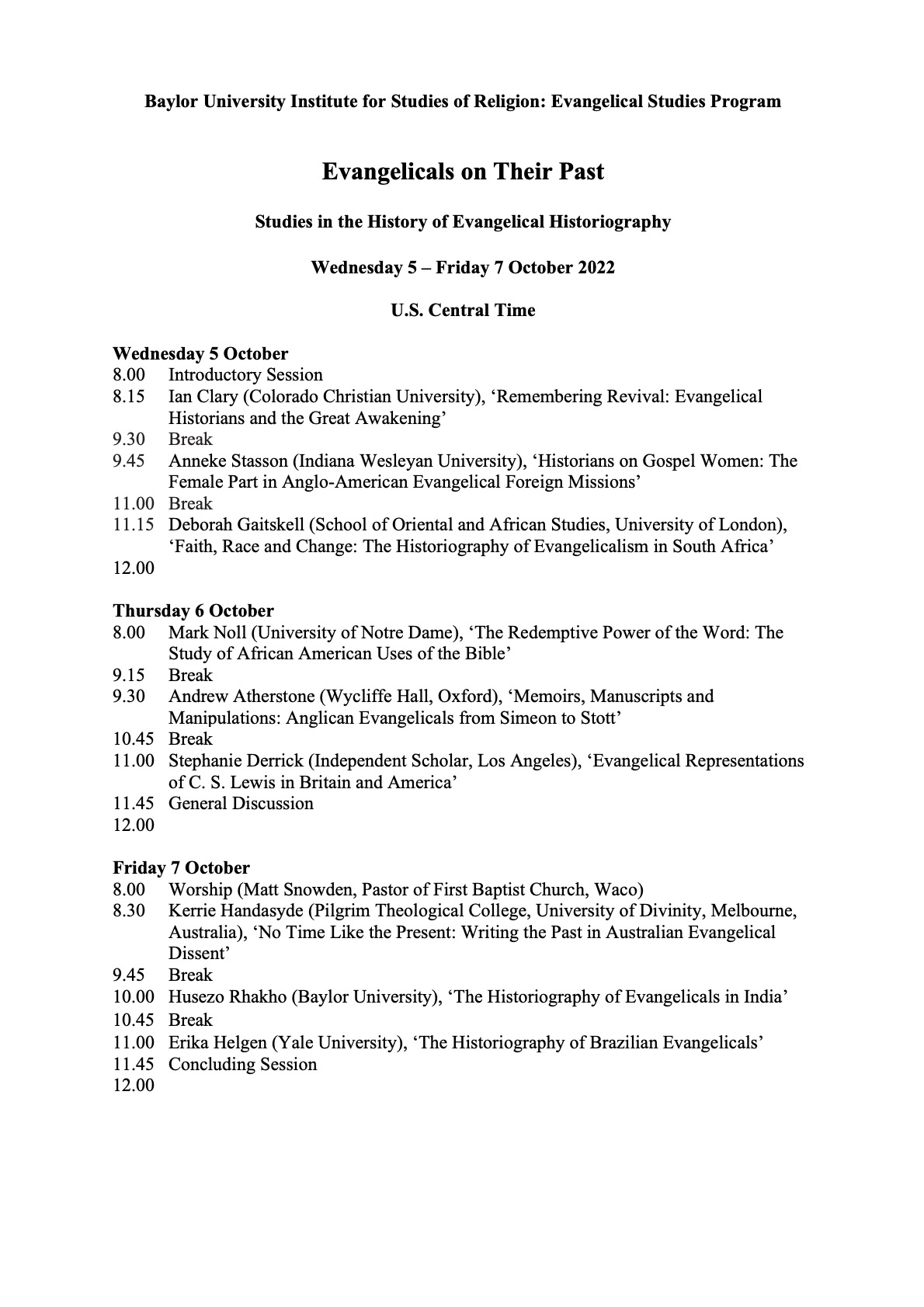 Baylor University Institute for Studies of Religion: Evangelical Studies Program
