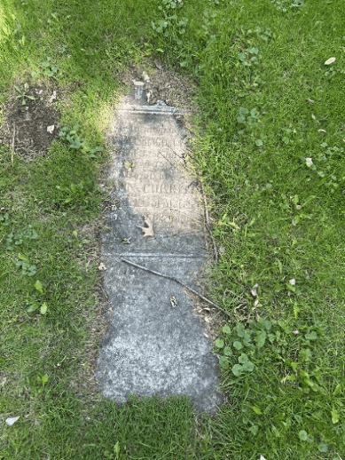 I incorporated a visit to the cemetery as part of a day’s walking tour of nineteenth-century Toronto and Ontario Baptist history. This allowed students the opportunity to visit the site of a number of Baptist worthies buried there. One such figure is Washington Christian, pastor of the First Coloured Calvinistic Baptist Church of Toronto (1834). On our first class visit, however, we could not find the grave, though we had been clearly directed by cemetery staff to Q15 (south). Finally, one student spotted the remaining corner of a flat stone mostly covered in grass. Cutting away the sod we found him! (Subsequently, I clear the grass upon every visit).